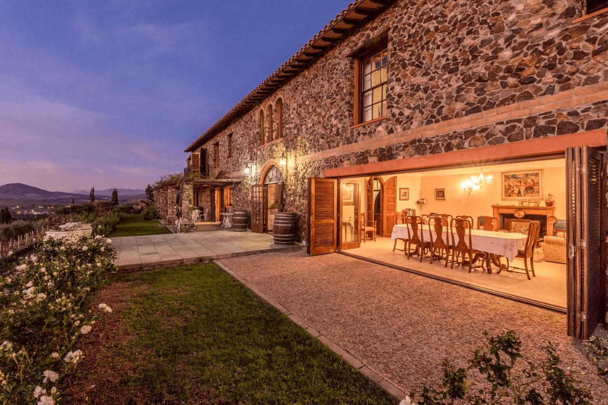 If grandeur is on your list of must-haves, look no further than this six-bedroom Colonial-style estate. Positioning on a vineyard-covered mountain, this home shines elegantly both inside and out—the manicured grounds feature a beautiful pool for relaxation, and the property’s farmland currently hosts plums, grapes, and olives. With its slopeside location, the views of the surrounding region are unparalleled.